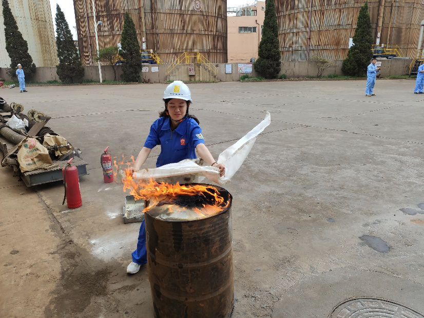 1、消防安全技能竞赛之女子项目:油盘着火灭火的技巧与方法