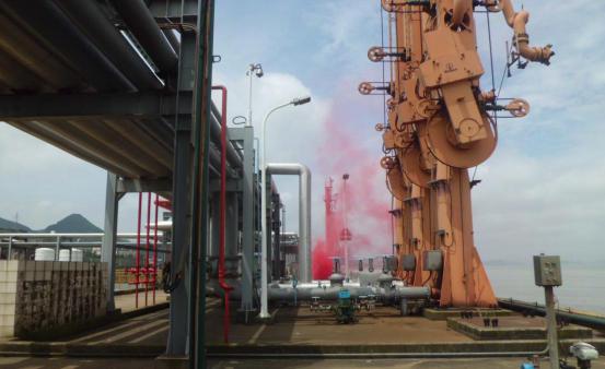 灭火组出动,并开启周边喷淋装置,利用消防炮灭火。