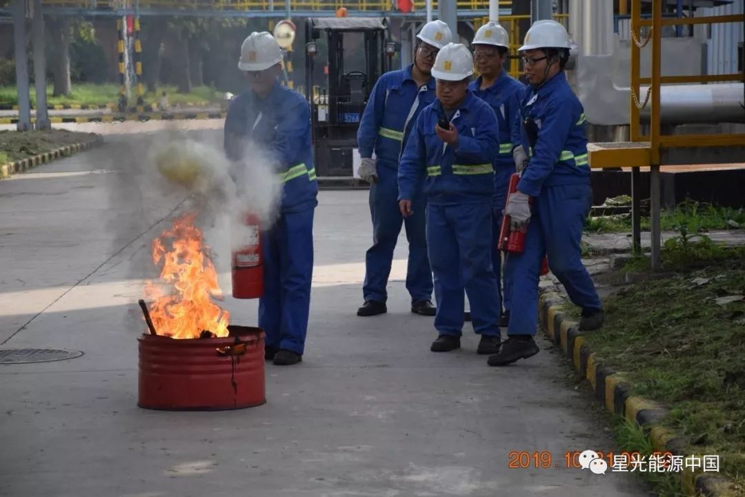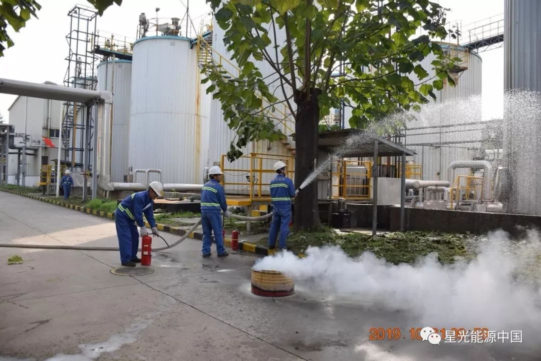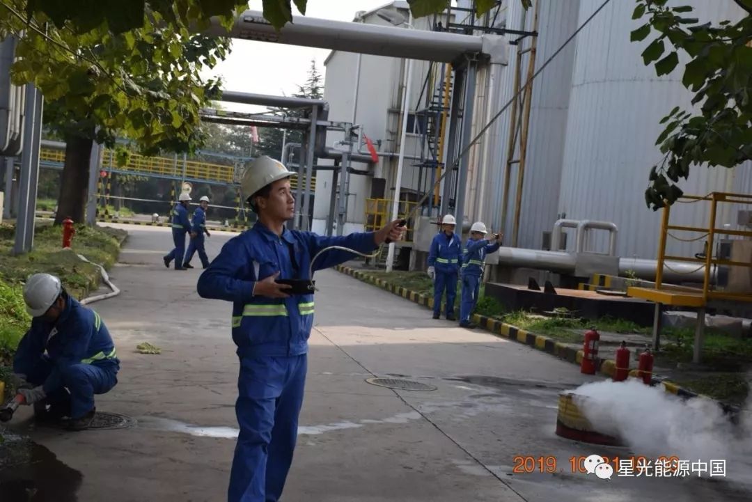西安星光能源有限公司灭火组到达事发地点,并进行灭火作业,在灭火组人员的紧急操作下,大火被扑灭了。