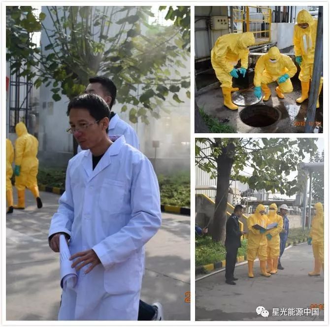 本次演练的假想背景为2019年10月31日上午10时,西安星光能源有限公司一期罐区TK100储罐高进加热管线腐蚀,严重导热油发生泄漏,事故发生后,西安星光能源有限公司迅速启动突发环境事件应急预案,采取前期应急处置措施,同时向环保局报告突发环境事故情况。环保局在接警后,迅速组织人员抵达现场,并分组对事故进行调查和处置。由于应急处理及时得当,没有发生环境污染,无人员伤亡,10时30分演练结束。