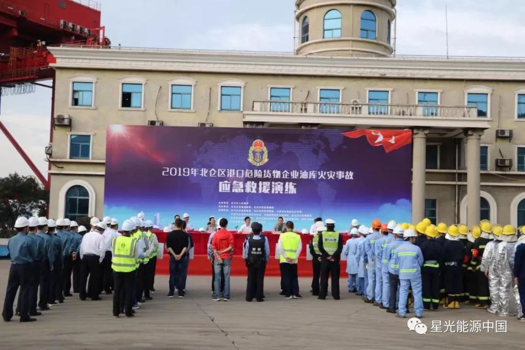为加强港口危险货物安全管理,预防和减少危险货物生产安全事故,保障人员生命、财产安全和保护生态环境,根据《突发事件应急预案管理办法》、《生产安全事故应急条例》等文件要求,在北仑区人民政府组织下,星光能源宁波库区开展了2019年北仑区港口危险货物火灾事故应急救援演练,区交通运输局、区生态环境局、区卫健局、穿山海事以及公安和消防等部门作为承办和协助单位亦参与了此次演练。