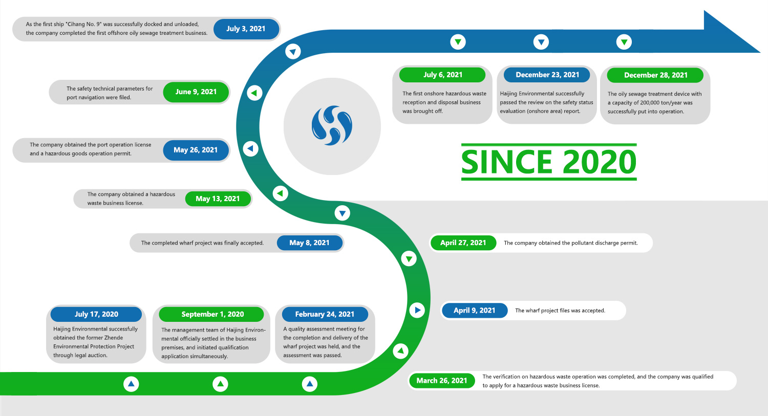 Star Energy acquired the former Jingde Environmental Protection Project in 2020 and established Ningbo Haijing Environmental Technology Co., Ltd., a company specializing in the reception and disposal of waste mineral oil and waste emulsion, oily sewage from ships, and oil sludge during cabin cleaning and tank cleaning. It is also is the core base of offshore oil spill emergency system designated by the competent department of Zhejiang Province.
